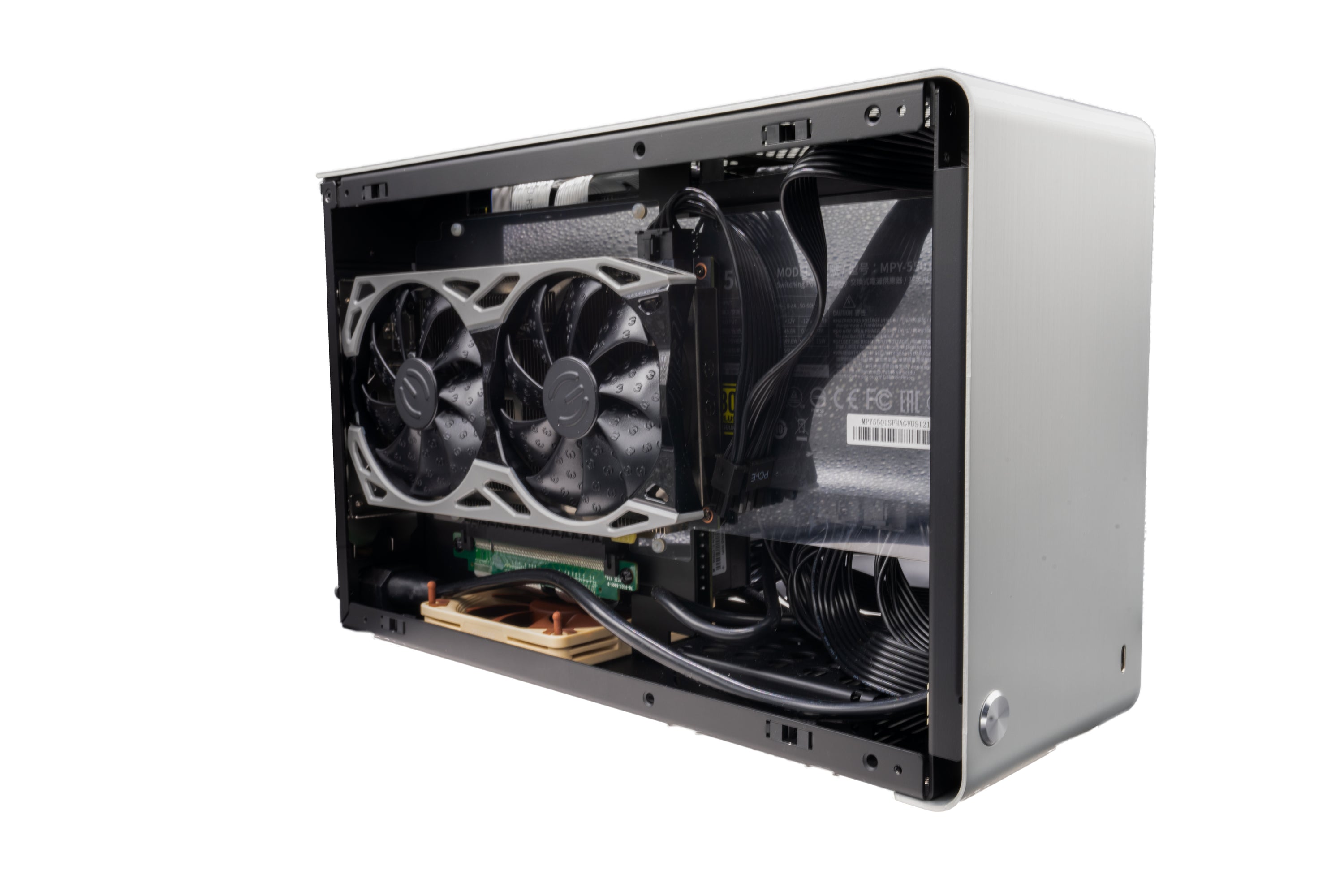 The A4-SFX case is a one-man project created by Dan Cases with the goal of creating the smallest case possible while still using high-end standardized components, such as Ryzen™ 7 processors and powerful full-length GPUs such as the GeForce RTX™ 3080.